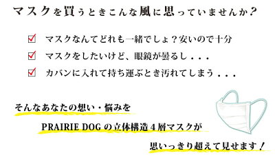 ◆本品の売上の1部は国境なき医師団の人道支援活動に役立てられます◆ (一社)日本衛生材料工業組合連合会自主基準による表示 品名:立体4層構造マスク 日本製 対象:花粉・ほこり等 サイズ(約) 160×90mm 素材 (本体・フィルタ)ポリプロピレン、ポリエステル、ポリエチレン (耳ひも)ポリエステル、ポリウレタン (ノーズフィッター)ポリエチレン 抗菌剤:銀系抗菌剤(表面の不織布より2層目に使用) 販売者名 株式会社プレーリードッグ ※株式会社プレーリードッグは一般社団法人 日本衛生材料工業連合会 全国マスク工業会 会員です。